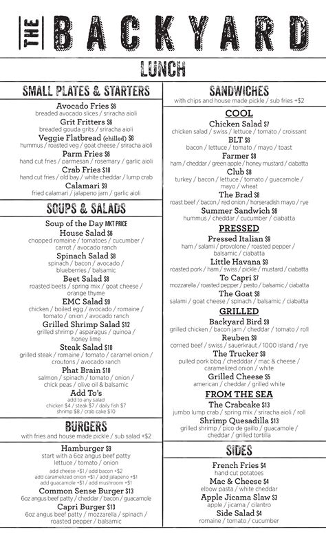 backyard restaurant menu prices