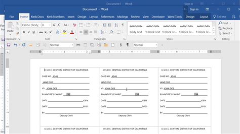 how to create a list of exhibits in word