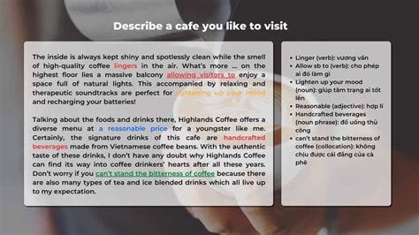 how to describe a cafe in writing