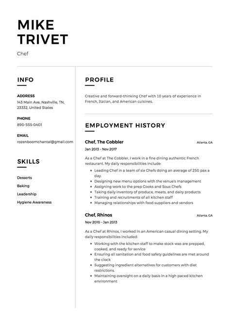 restaurant chef cv sample pdf